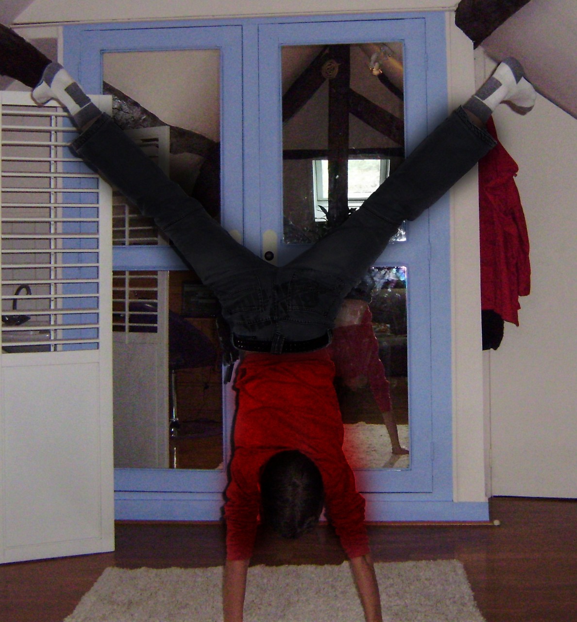puis enlever la main droite ou gauche juste apres avoir fai l'equilibre jambe ecarte en un demi seconde ( equilibre 0,5 sec puis enlever la main )